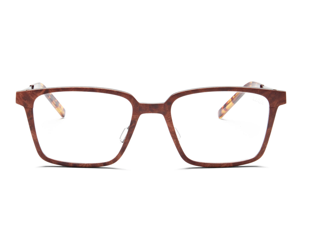 Our Mariner frame is an elegant design crafted from red camphor wood and bronze metal for a sleek and modern look. It boasts multi-layered wood incorporating a mid-layer of eco-fibre for that added durability. The arms are complemented with bio-acetate ear tips.