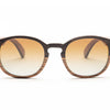 5Calling all round-lens revolutionists... meet Riva – the design that’s making retro, relevant. With the latest innovation, the new Riva is made with our latest multi-layered design with an extra mid-layer of eco-fibre for that added strength and durability. We've also introduced a discreet opening screw, to allow for prescription lenses. Crafted using a two toned ebony and zebra wood, these beautiful glasses boast a faded ombre frame to match the brown gradient lenses it surrounds. Metal logo detailing gives that urban feel to this rurally inspired design. Although the frame might be faded, the style is as vivid as it gets.