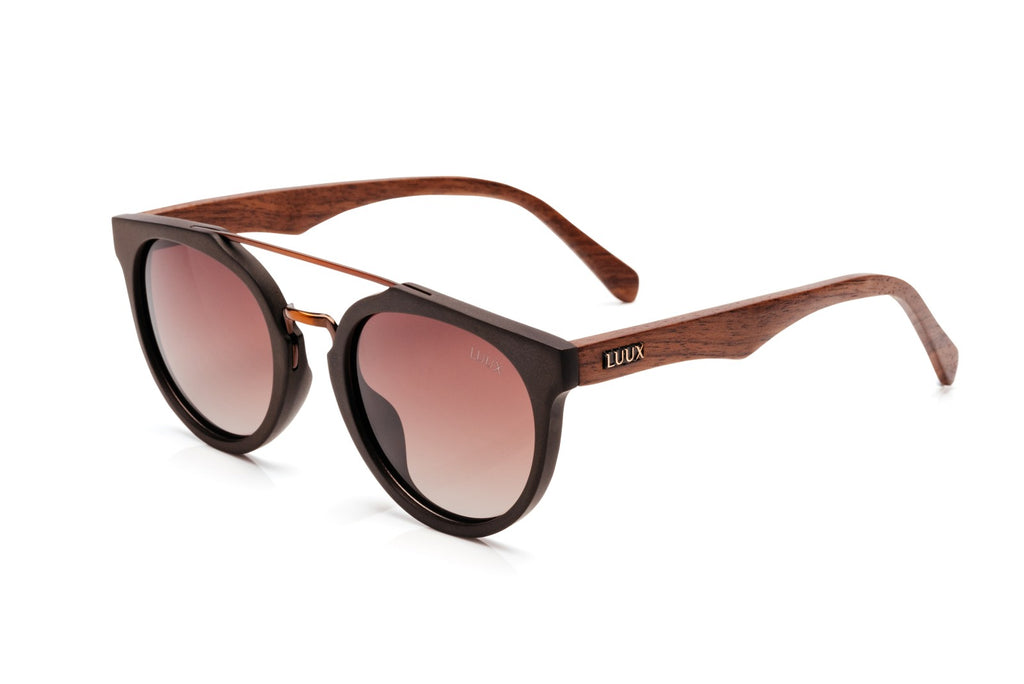 7Cut with a rounded frame, the Barque design is aviator style; elevated. Swapping the typical metal frame for a walnut wood and acetate mix, Barque Original is the slick sunglasses model that makes a worthy addition to your summer accessory arsenal. The gradient sepia lenses, brown frames, bronze details and natural wood create a seamless colour combination to suit every outfit choice.