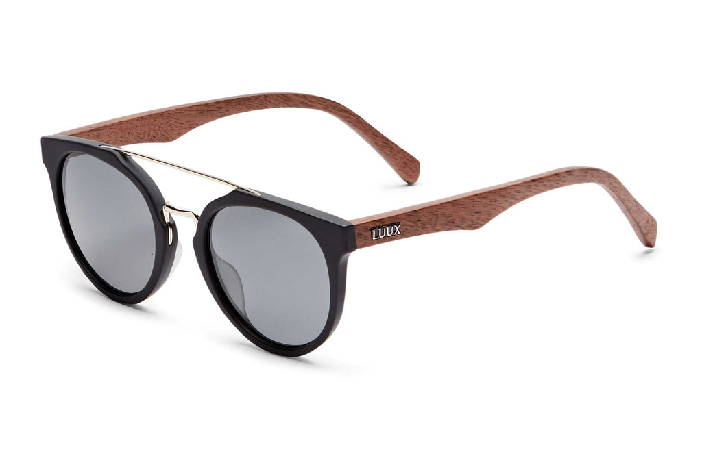 2Cut with a rounded frame, the Barque design is aviator style; elevated. A close relative of our Barque Ochre, the Shadow is the same colour way with the Matte black front with the timeless walnut arms but with grey CR39 lenses, giving that bit of extra clarity through the darker lenses. This colour way is for those that love the subtle taste of black sunglasses with a pinch of niche wooden craft.