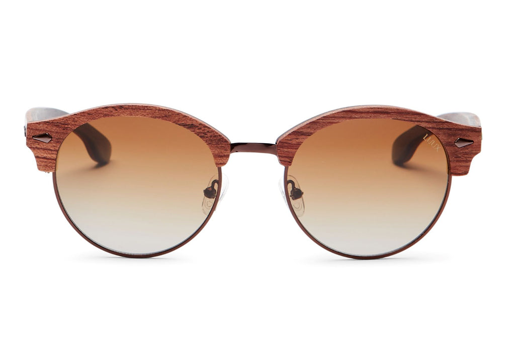 The Helmsman is the first of our multi-layered wooden frames. Stronger than ever before this LUUX addition has a Rosewood outer layer pressed and complemented with a darker Ebony inner layer. Our strongest, most elegant unisex design with a trailblazer in mind, this frame will be what sets you apart no matter where you go. The bronze metal detail as polished as you've seen, paralleled with the 3D Rivets make the Helmsman stand alone that bit more. They're more than fit for purpose with a sleek brown gradient CR39 polarised lenses as standard.